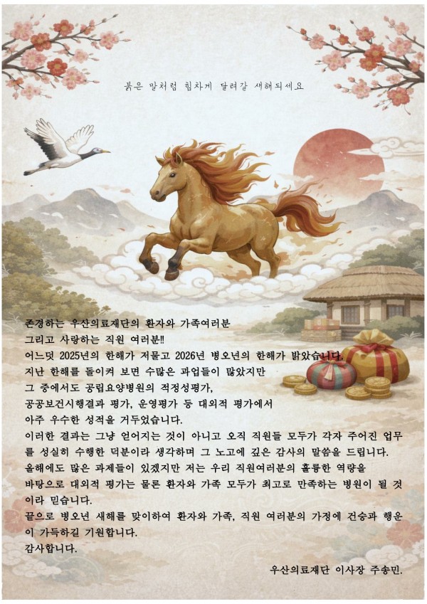 목록 새해인사 페이지 정보 작성자최고관리자 댓글0건 조회13회 작성일25.12.22 09:31 본문 다음글크리스마스 트리를 설치하였습니다. 25.12.04 댓글 0 댓글목록 등록된 댓글이 없습니다.