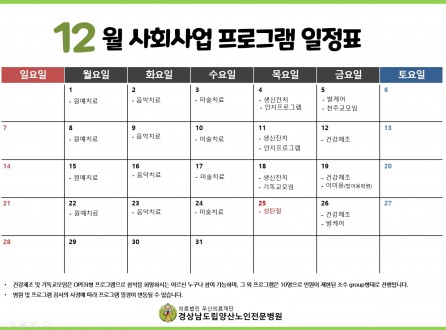 12월 사회사업 프로그램 일정표